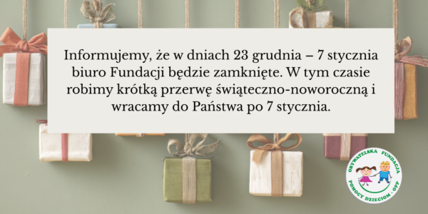 Uprzejmie informujemy, że 2 maja (piątek) biuro Fundacji będzie nieczynne. Wszystkie sprawy będziemy załatwiać ponownie od 5 maja. Dziękujemy za zrozumienie i życzymy spokojnych świątecznych dni! 🇵🇱