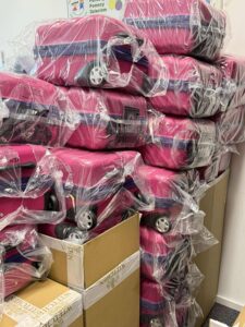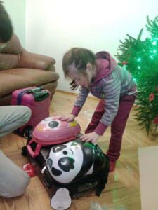 Wśród przekazanych rzeczy znalazły się walizki na kółkach, plecaczki dla najmłodszych dzieci, damskie kurtki oraz torby. Było ich tak dużo, że każdy nasz podopieczny otrzymał minimum jeden prezent, a często nawet kilka. Wszystkie rzeczy były przez nas starannie dobierane, pakowane i wysyłane do rodzin, tak aby trafiły tam, gdzie będą naprawdę potrzebne.